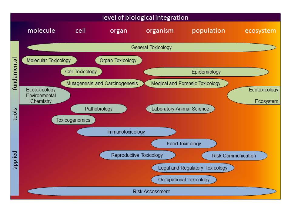 - application of toxicological principles in different areas (e.g., food, occupation, environment) and in risk assessment and risk communication;